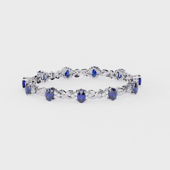 6.70 CT Classic Blue Oval Diamond Bracelet with Round Diamonds
