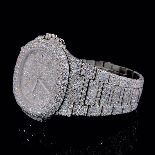 Luxury Dial With Date Function With Fully Ice Out Moissanite Diamond Watch