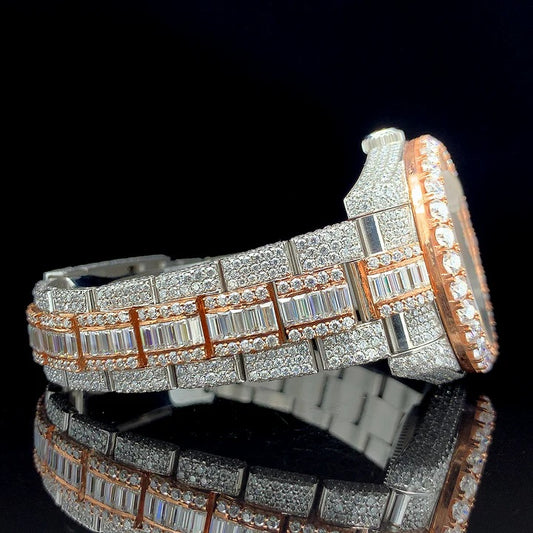 Gold & Silver Fully Iced-out Moissanite Diamond Watch